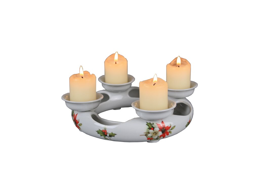 Practical advent candlestick for 4 candles of high-quality Czech porcelain. There is a space for water in the body of the candlestick. It is also possible to arrange live flowers.