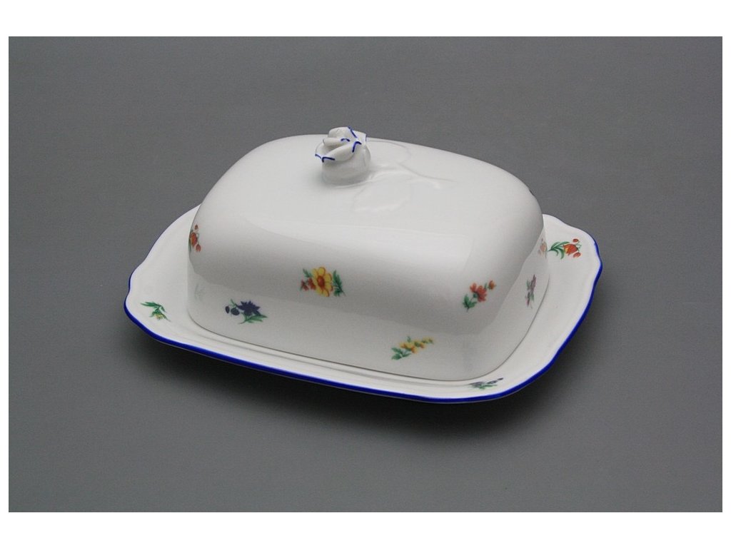 Practical square butter dish of high-quality Czech porcelain.