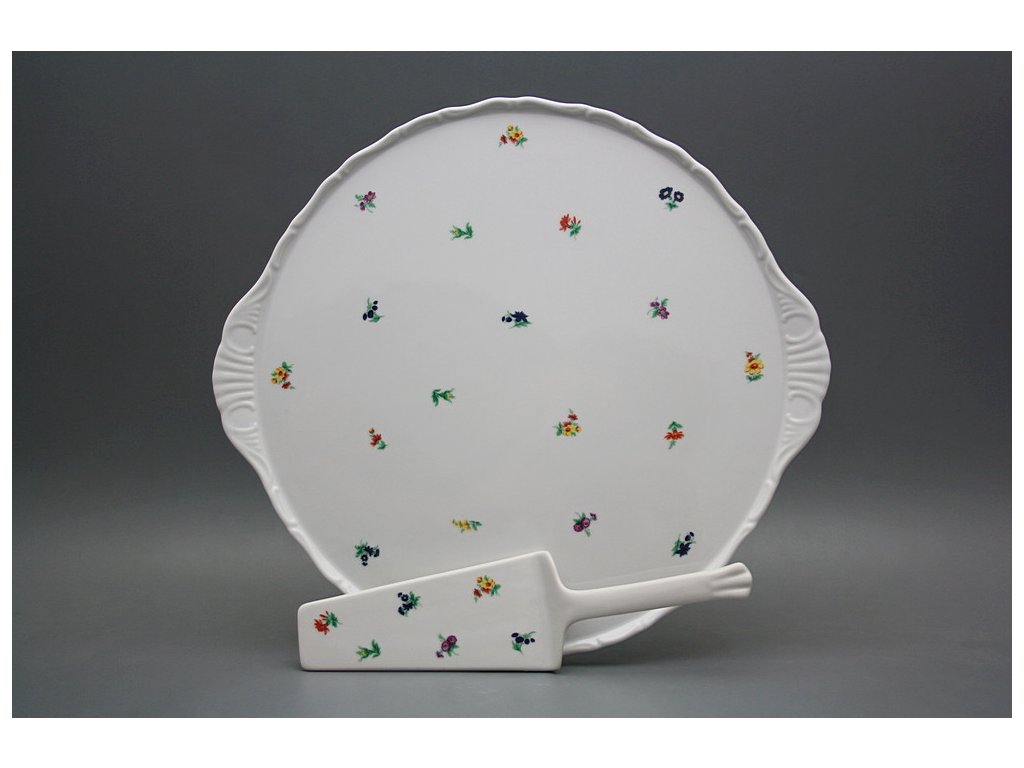 Practical cake dish 30,5cm with cake shovel of high-quality Czech porcelain.