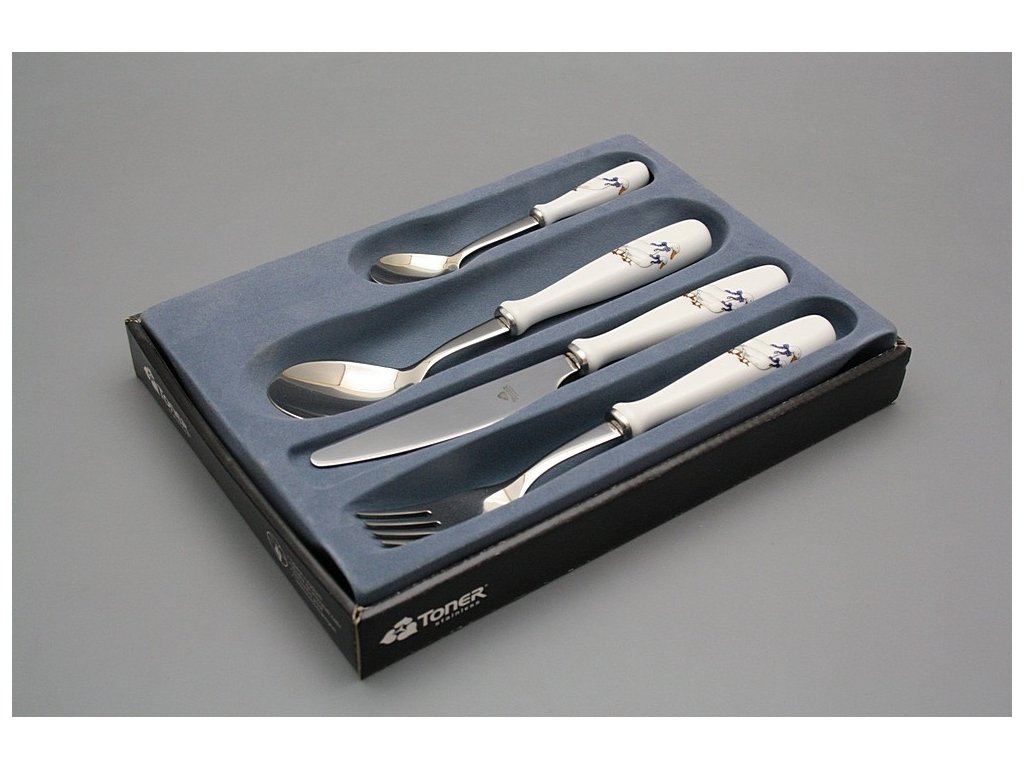 Gift box for 4-piece set of porcelain cutlery Toner, material - cardboard, plastic.