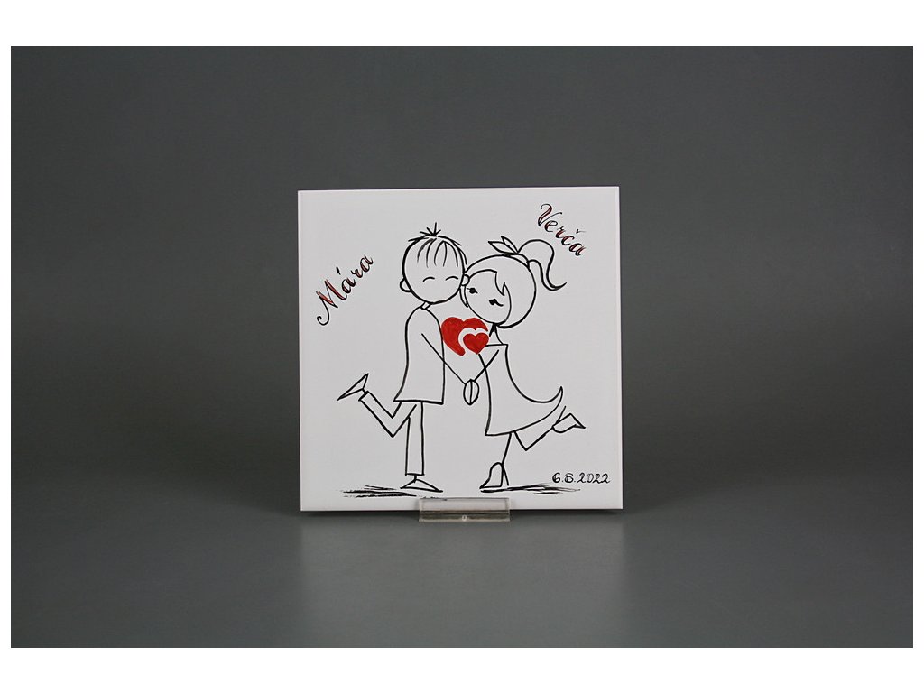 Originální ručně malovaná obkladačka 15x15cm pro svatebčany, může sloužit i jako podložka, páleno v komorové peci na teplotu 820 st. Celsia - nesmazatelný omyvatelný dekor.