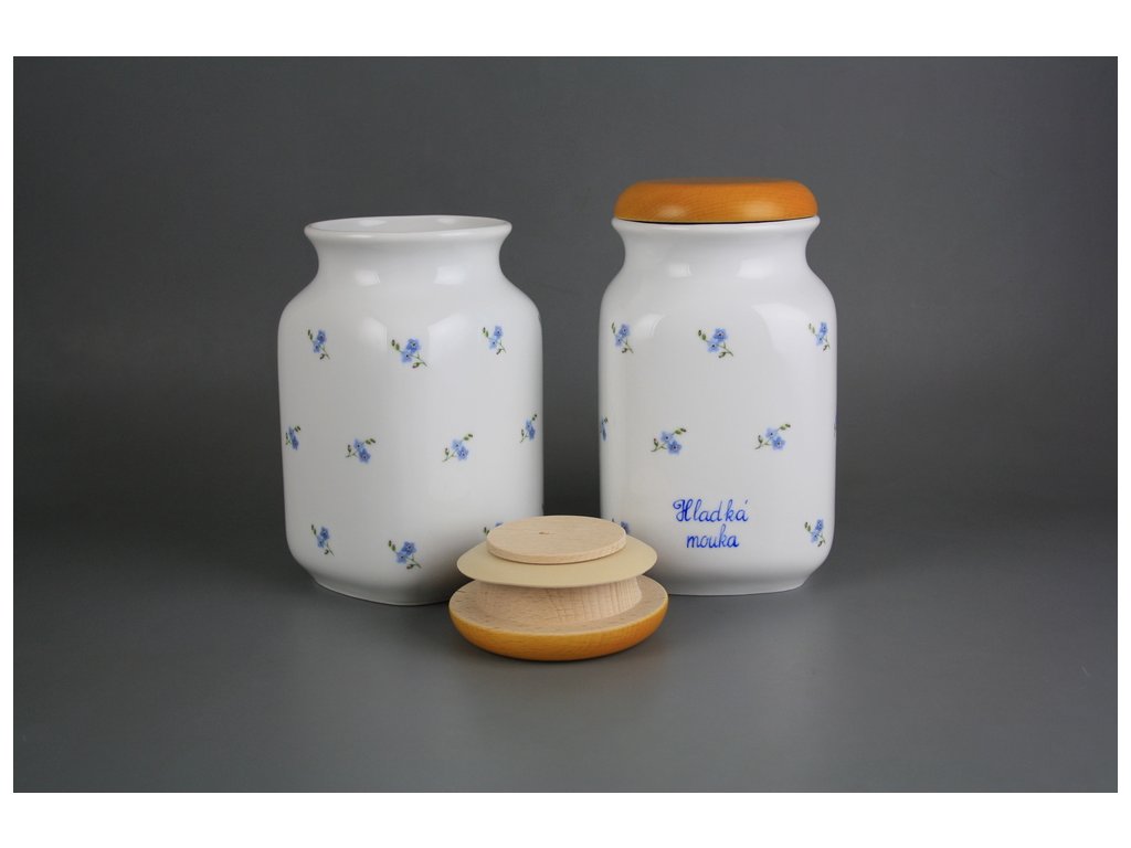 Praktická dóza na poživatiny 1l s dřevěným uzávěrem z kvalitního českého porcelánu. Vhodná do myčky.