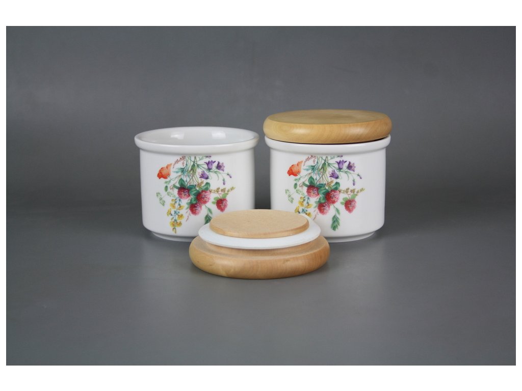 Praktická malá dóza s dřevěným uzávěrem z kvalitního českého porcelánu. Vhodná do myčky.