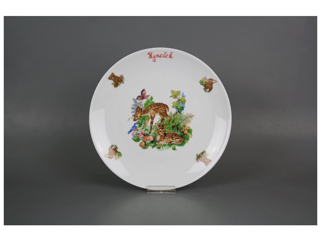 Practical flat plate 21cm made of high-quality Czech porcelain, featuring a child's handwritten name.