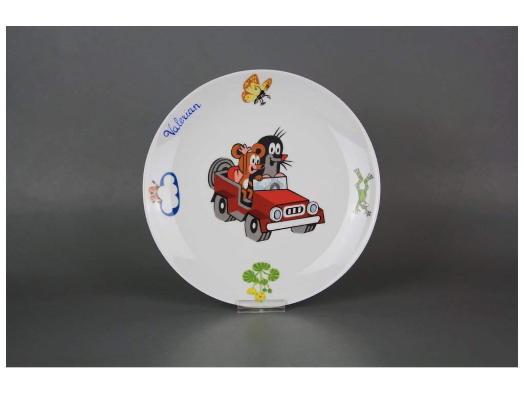 Practical flat plate 21cm made of high-quality Czech porcelain, featuring a child's handwritten name.