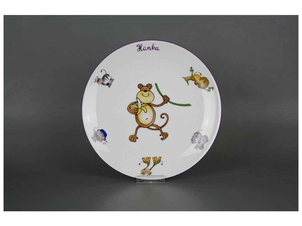 Practical flat plate 21cm made of high-quality Czech porcelain, featuring a child's handwritten name.