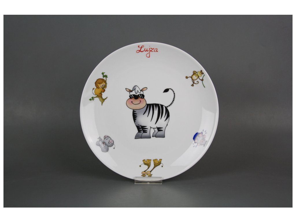 Practical flat plate 21cm made of high-quality Czech porcelain, featuring a child's handwritten name.