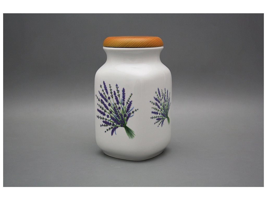 Practical food jar 1l with wooden cover of high-quality Czech porcelain.