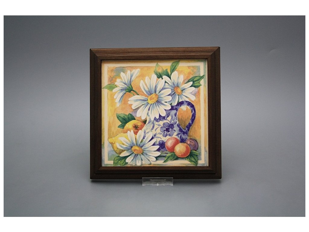 Závěsný keramický obrázek s dřevěným rámečkem, vypalovací teplota motivu 820 st.C., nesmazatelný omyvatelný dekor.