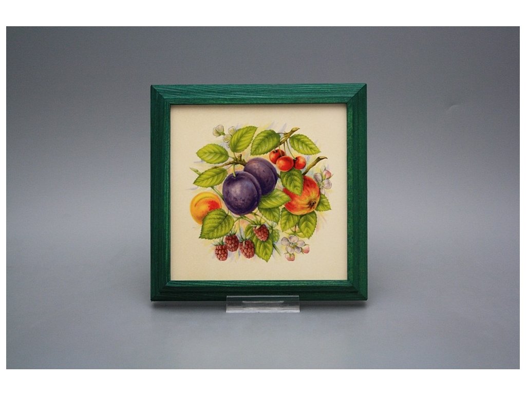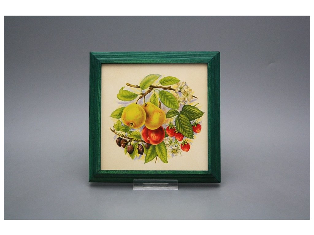Závěsný keramický obrázek s dřevěným rámečkem, vypalovací teplota motivu 820 st.C., nesmazatelný omyvatelný dekor.