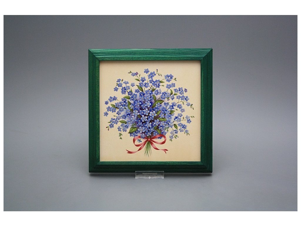 Závěsný keramický obrázek s dřevěným rámečkem, vypalovací teplota motivu 820 st.C., nesmazatelný omyvatelný dekor.