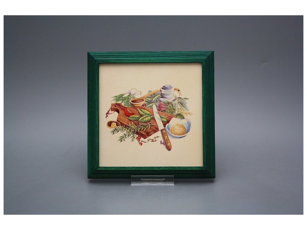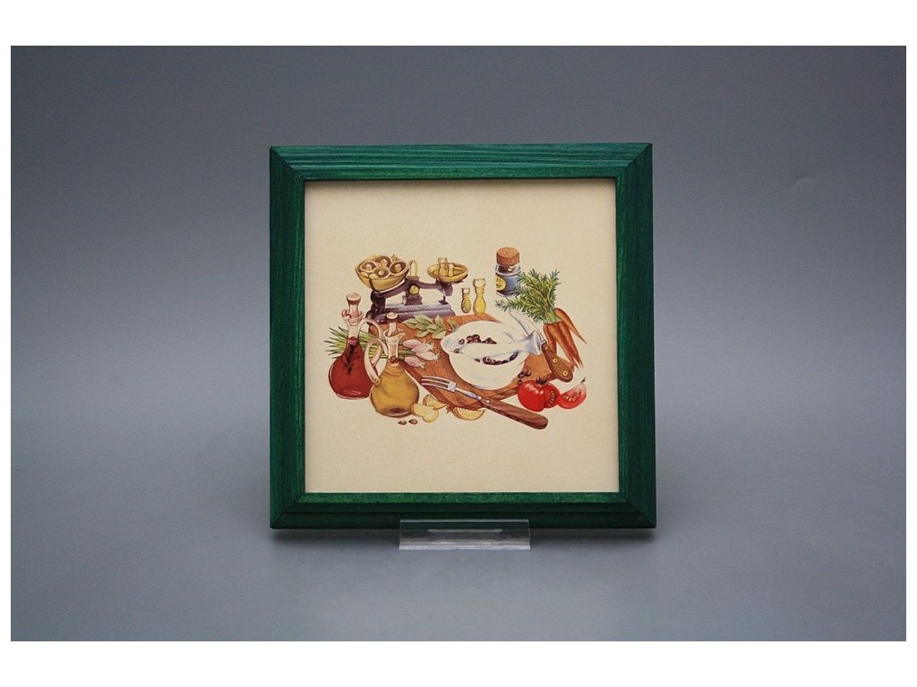 Závěsný keramický obrázek s dřevěným rámečkem, vypalovací teplota motivu 820 st.C., nesmazatelný omyvatelný dekor.