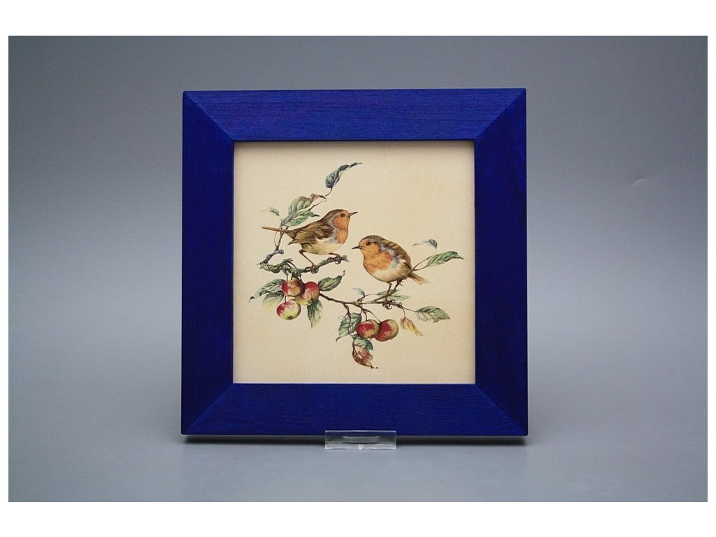 Závěsný keramický obrázek s dřevěným rámečkem, vypalovací teplota motivu 820 st.C., nesmazatelný omyvatelný dekor.
