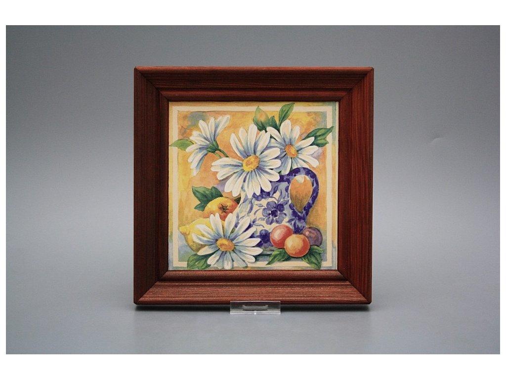 Závěsný keramický obrázek s dřevěným rámečkem, vypalovací teplota motivu 820 st.C., nesmazatelný omyvatelný dekor.