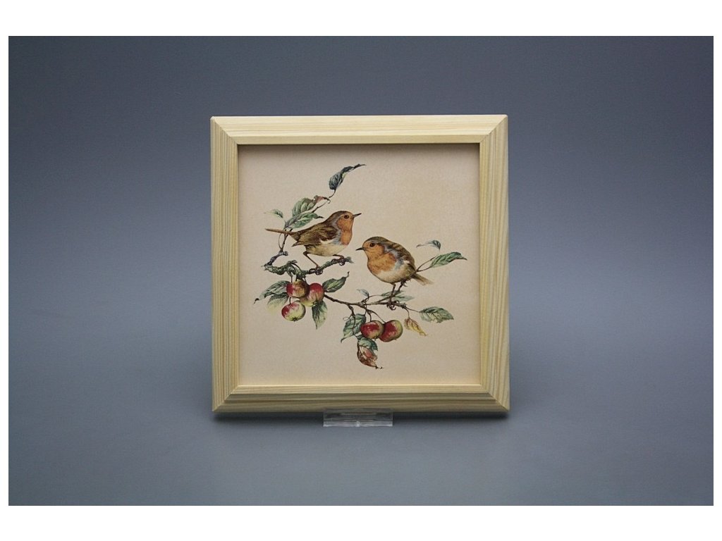 Závěsný keramický obrázek s dřevěným rámečkem, vypalovací teplota motivu 820 st.C., nesmazatelný omyvatelný dekor.