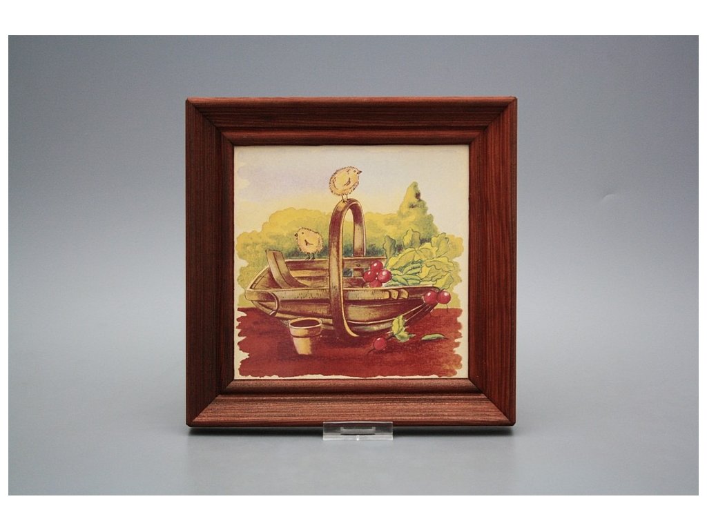Závěsný keramický obrázek s dřevěným rámečkem, vypalovací teplota motivu 820 st.C., nesmazatelný omyvatelný dekor.