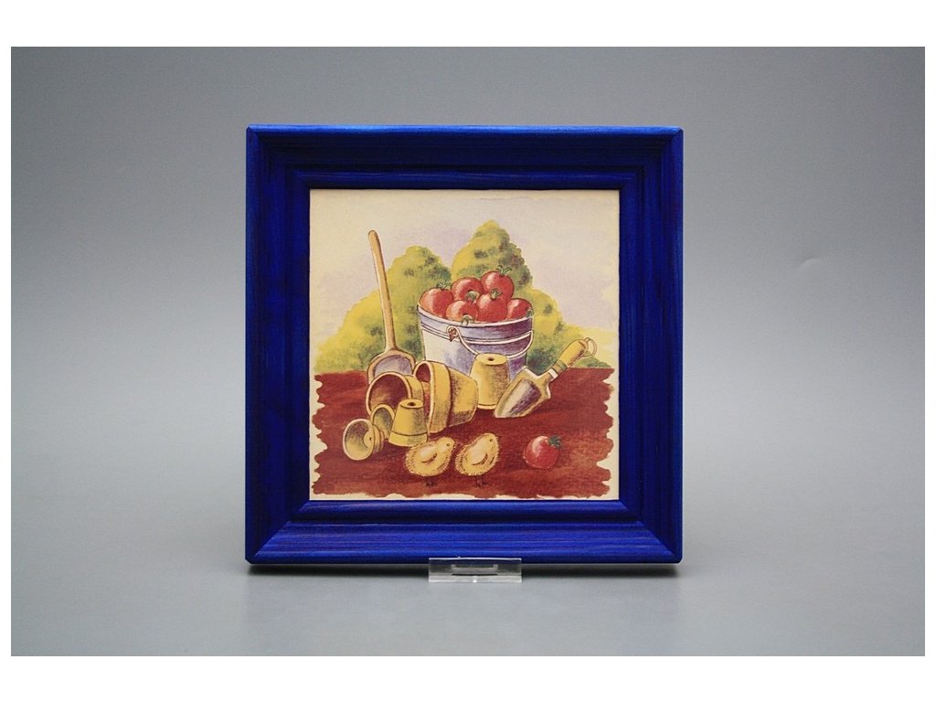 Závěsný keramický obrázek s dřevěným rámečkem, vypalovací teplota motivu 820 st.C., nesmazatelný omyvatelný dekor.