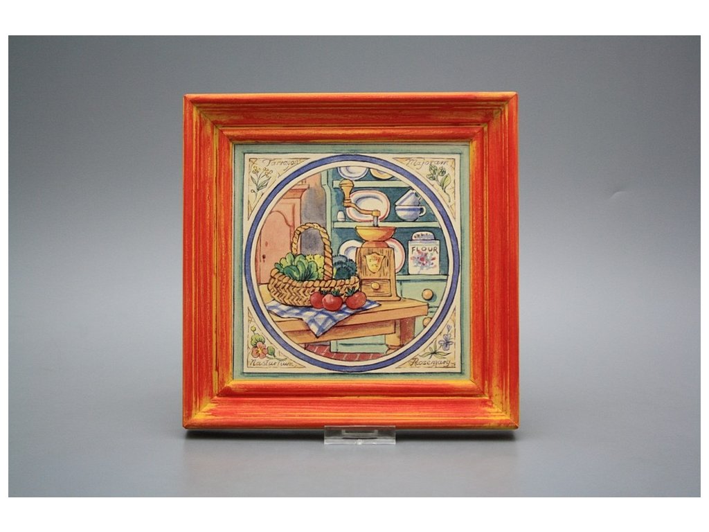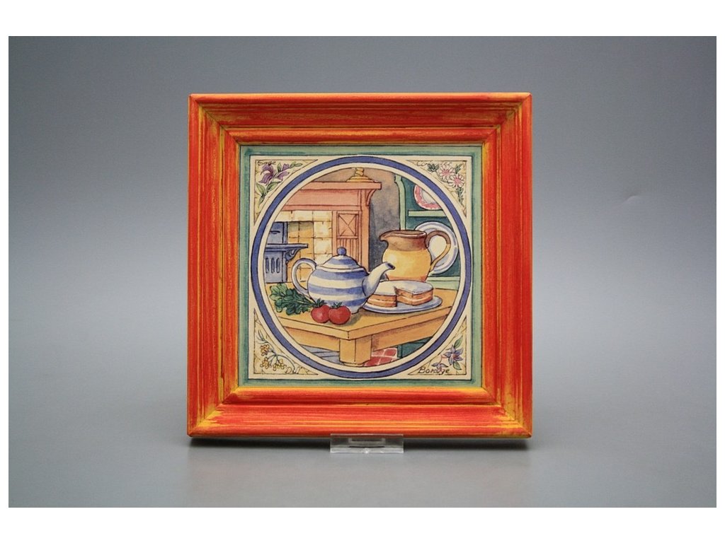 Závěsný keramický obrázek s dřevěným rámečkem, vypalovací teplota motivu 820 st.C., nesmazatelný omyvatelný dekor.