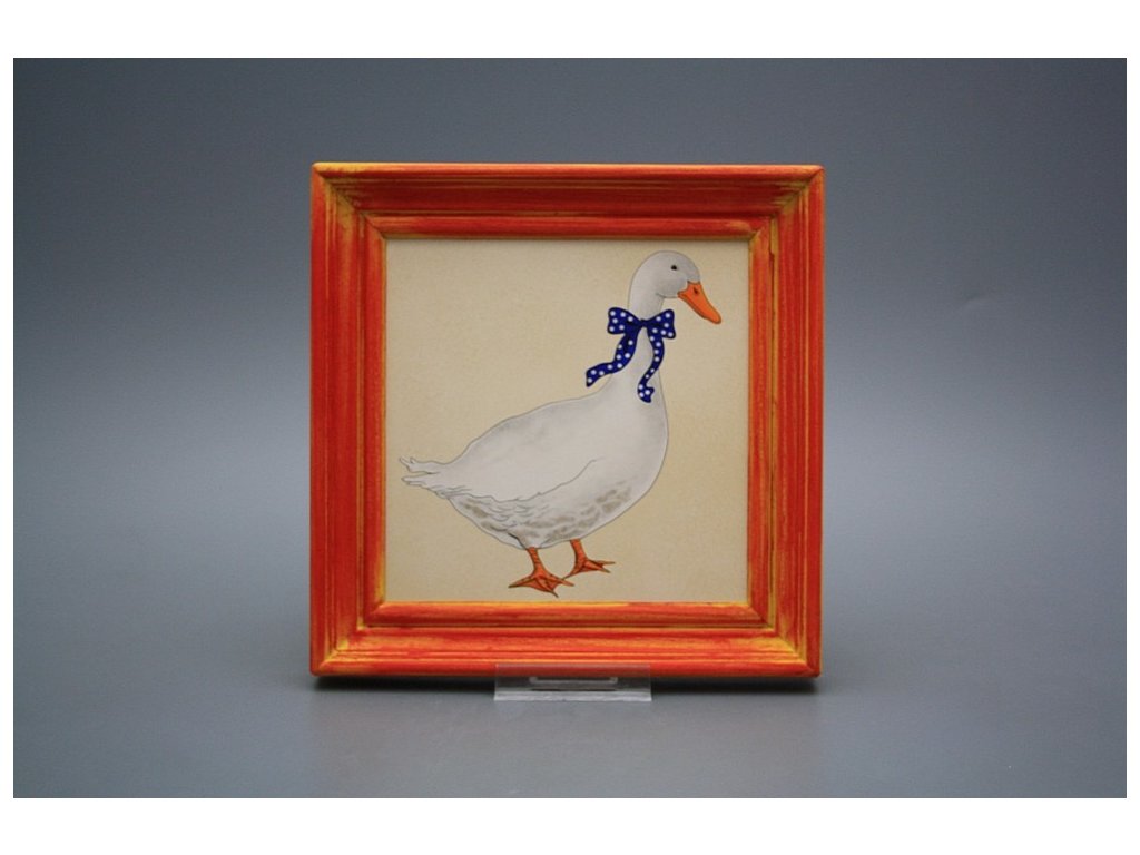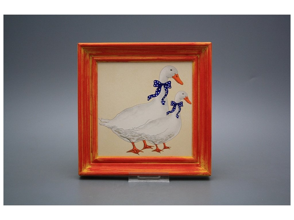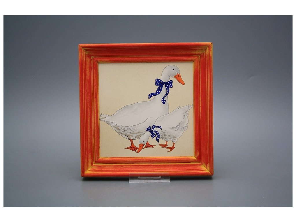 Závěsný keramický obrázek s dřevěným rámečkem, vypalovací teplota motivu 820 st.C., nesmazatelný omyvatelný dekor.
