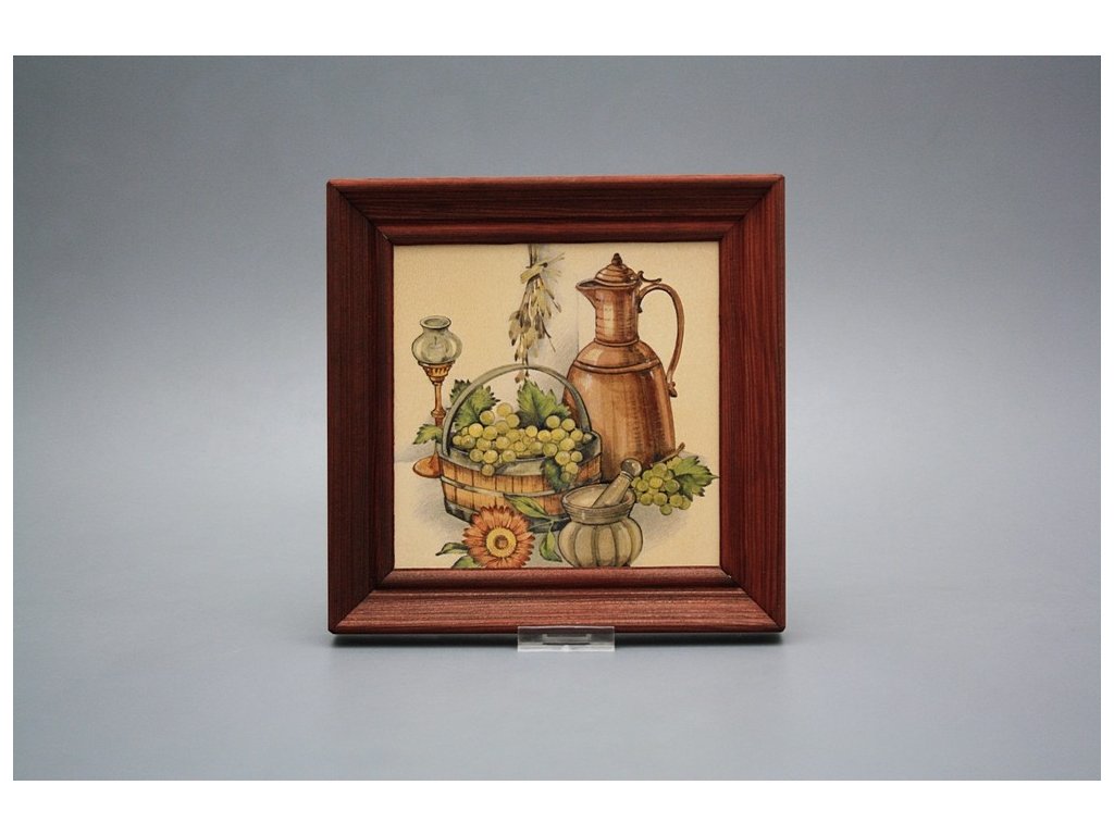 Závěsný keramický obrázek s dřevěným rámečkem, vypalovací teplota motivu 820 st.C., nesmazatelný omyvatelný dekor.