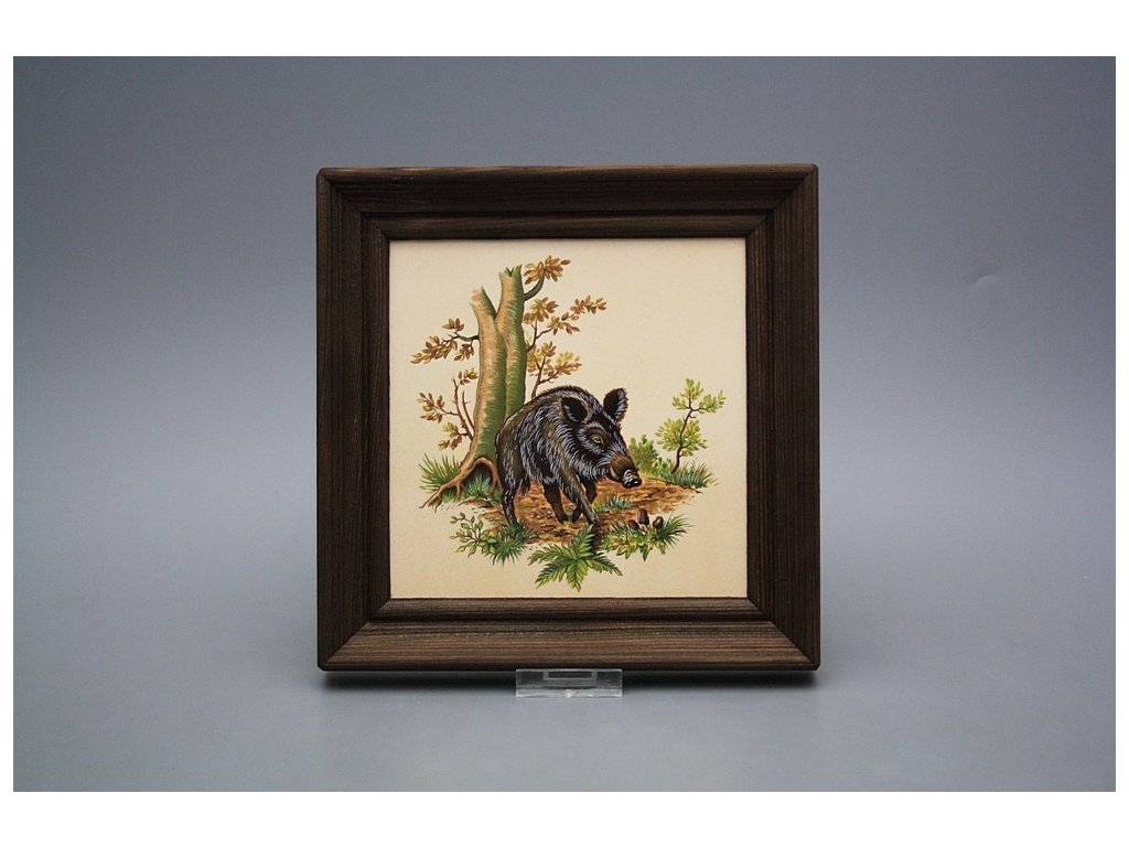 Závěsný keramický obrázek s dřevěným rámečkem, vypalovací teplota motivu 820 st.C., nesmazatelný omyvatelný dekor.