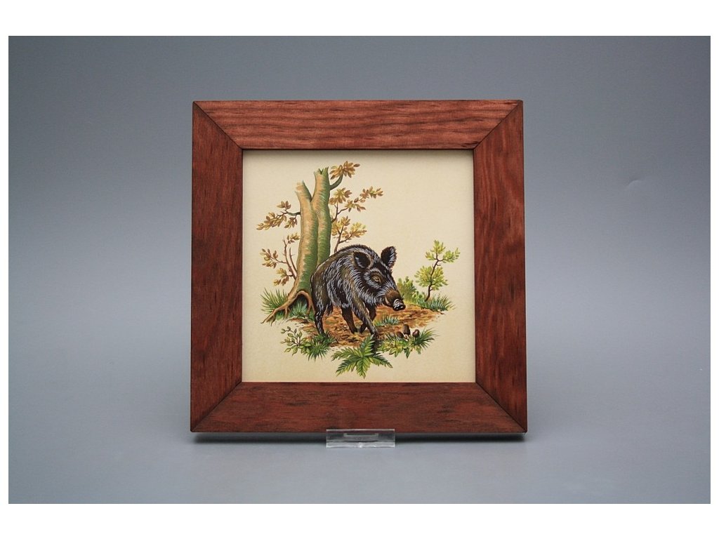 Závěsný keramický obrázek s dřevěným rámečkem, vypalovací teplota motivu 820 st.C., nesmazatelný omyvatelný dekor.