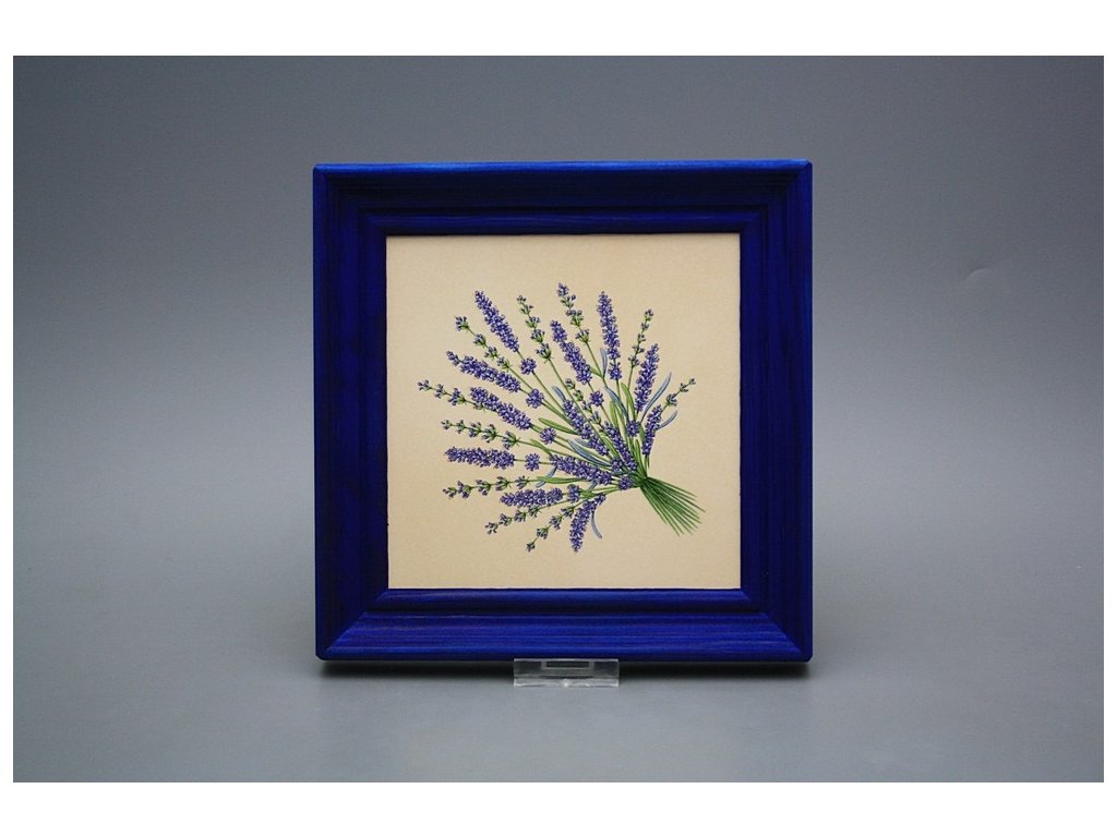 Závěsný keramický obrázek s dřevěným rámečkem, vypalovací teplota motivu 820 st.C., nesmazatelný omyvatelný dekor.