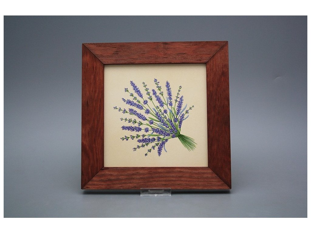 Závěsný keramický obrázek s dřevěným rámečkem, vypalovací teplota motivu 820 st.C., nesmazatelný omyvatelný dekor.