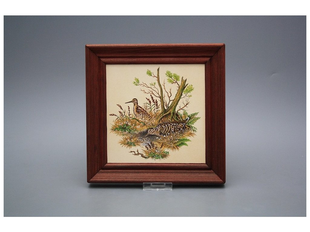 Závěsný keramický obrázek s dřevěným rámečkem, vypalovací teplota motivu 820 st.C., nesmazatelný omyvatelný dekor.