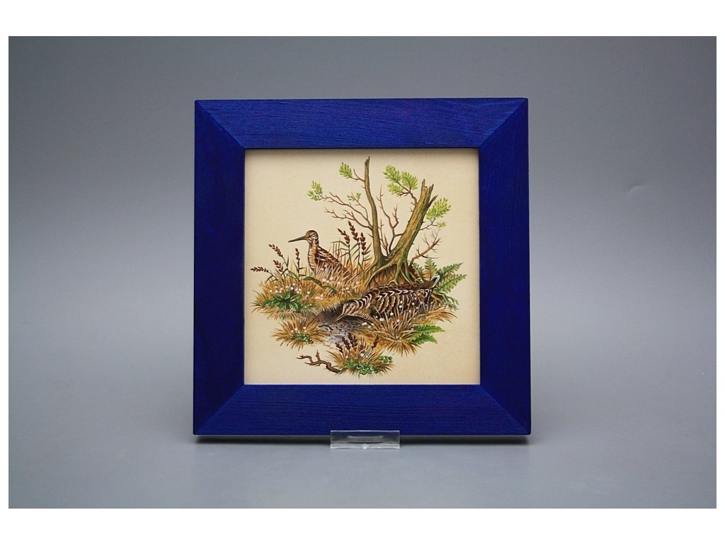 Závěsný keramický obrázek s dřevěným rámečkem, vypalovací teplota motivu 820 st.C., nesmazatelný omyvatelný dekor.