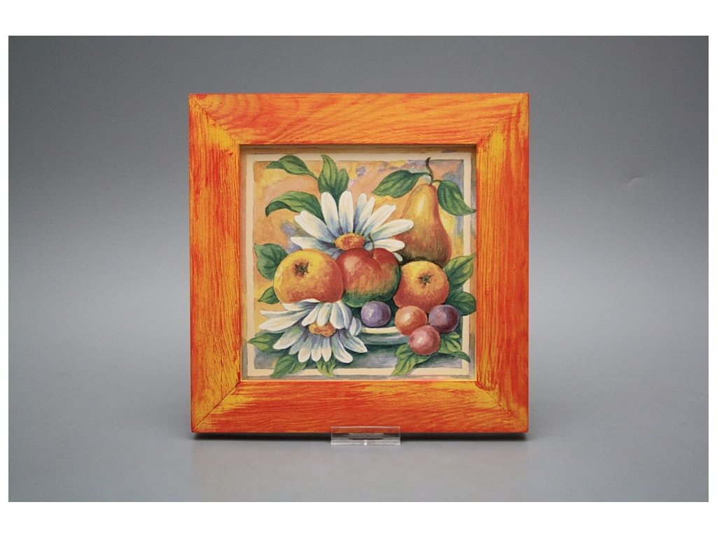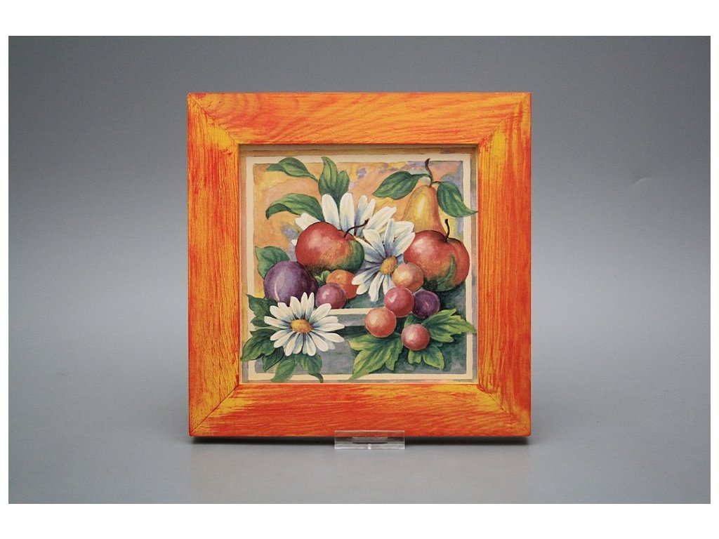 Závěsný keramický obrázek s dřevěným rámečkem, vypalovací teplota motivu 820 st.C., nesmazatelný omyvatelný dekor.