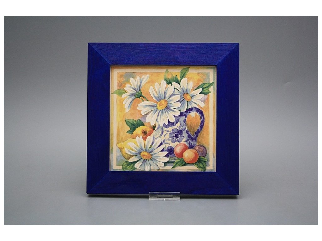 Závěsný keramický obrázek s dřevěným rámečkem, vypalovací teplota motivu 820 st.C., nesmazatelný omyvatelný dekor.