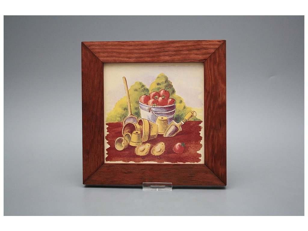 Závěsný keramický obrázek s dřevěným rámečkem, vypalovací teplota motivu 820 st.C., nesmazatelný omyvatelný dekor.
