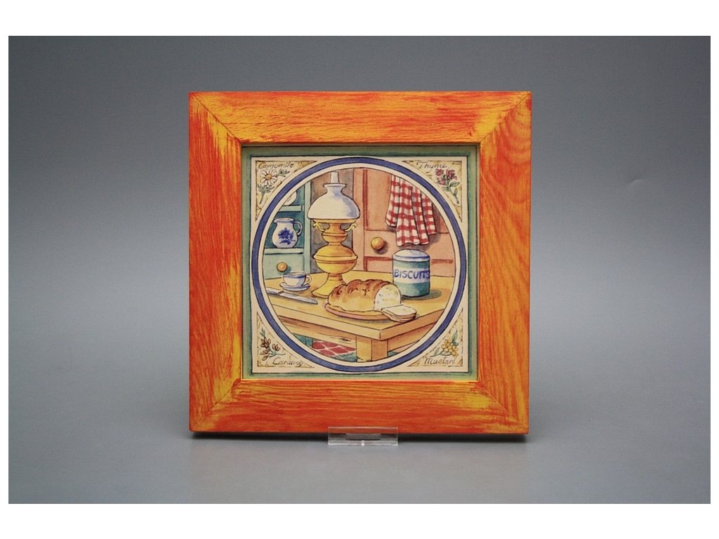 Závěsný keramický obrázek s dřevěným rámečkem, vypalovací teplota motivu 820 st.C., nesmazatelný omyvatelný dekor.