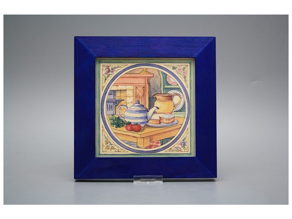 Závěsný keramický obrázek s dřevěným rámečkem, vypalovací teplota motivu 820 st.C., nesmazatelný omyvatelný dekor.