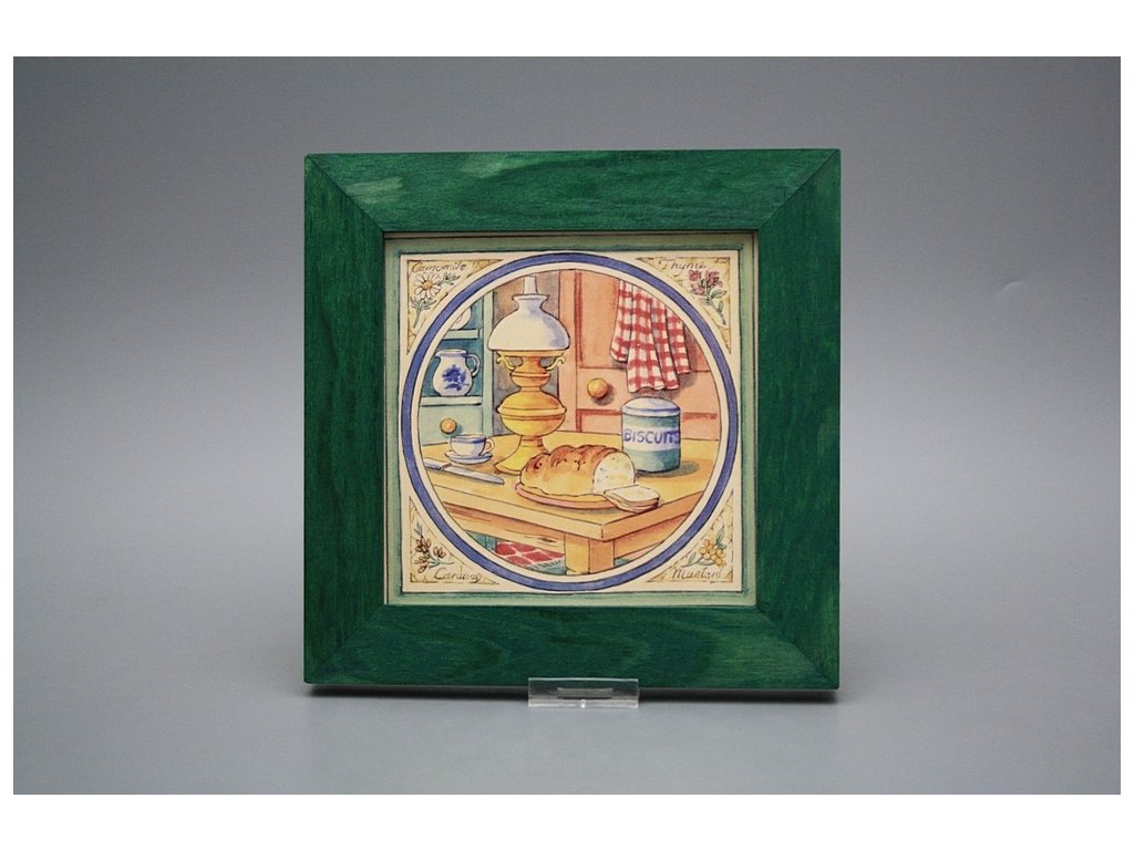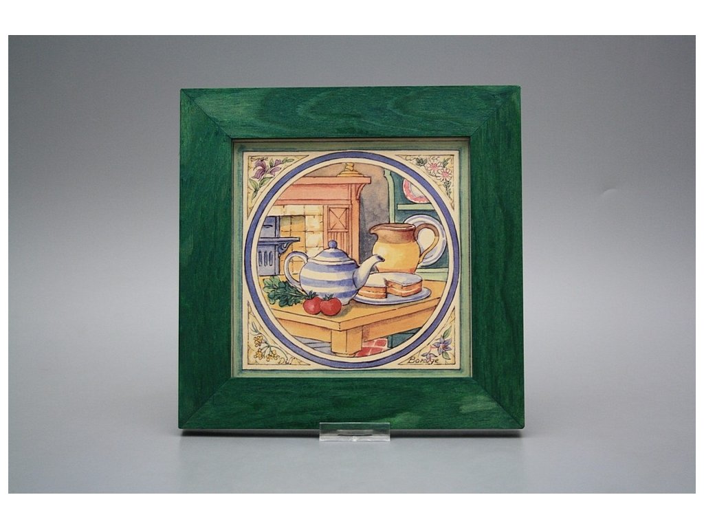 Závěsný keramický obrázek s dřevěným rámečkem, vypalovací teplota motivu 820 st.C., nesmazatelný omyvatelný dekor.