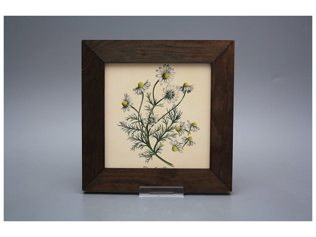 Závěsný keramický obrázek s dřevěným rámečkem, vypalovací teplota motivu 820 st.C., nesmazatelný omyvatelný dekor.