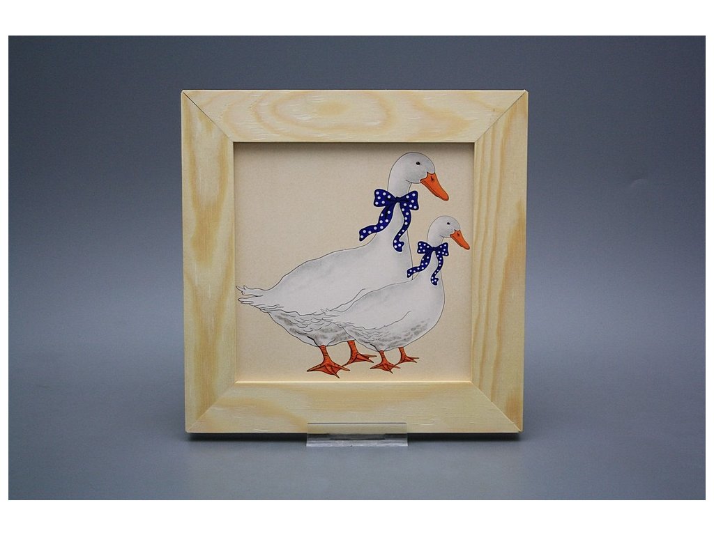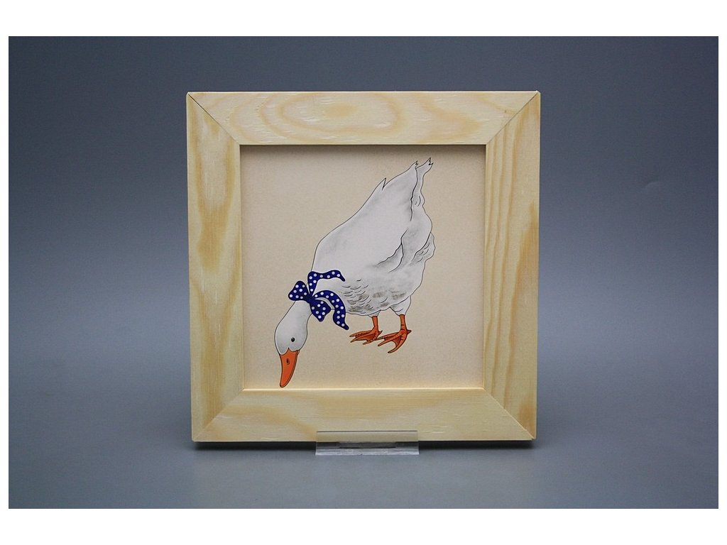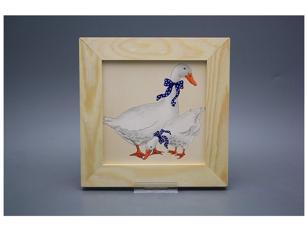 Závěsný keramický obrázek s dřevěným rámečkem, vypalovací teplota motivu 820 st.C., nesmazatelný omyvatelný dekor.