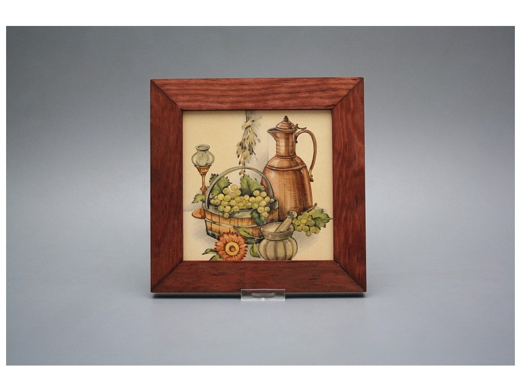 Závěsný keramický obrázek s dřevěným rámečkem, vypalovací teplota motivu 820 st.C., nesmazatelný omyvatelný dekor.