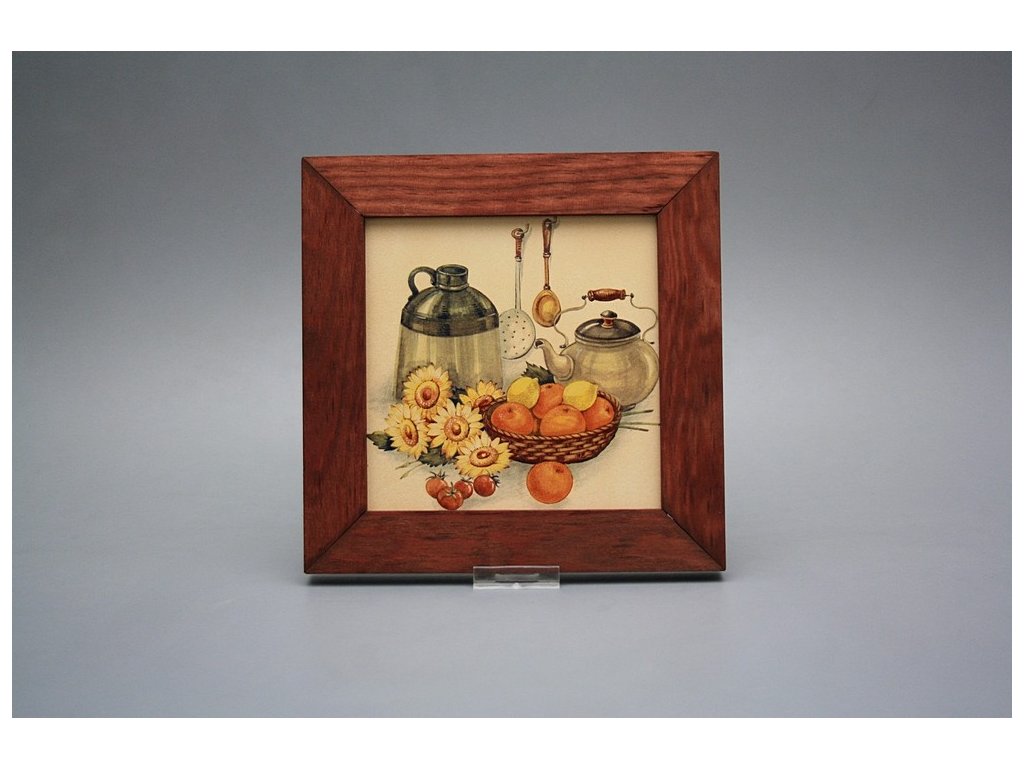Závěsný keramický obrázek s dřevěným rámečkem, vypalovací teplota motivu 820 st.C., nesmazatelný omyvatelný dekor.