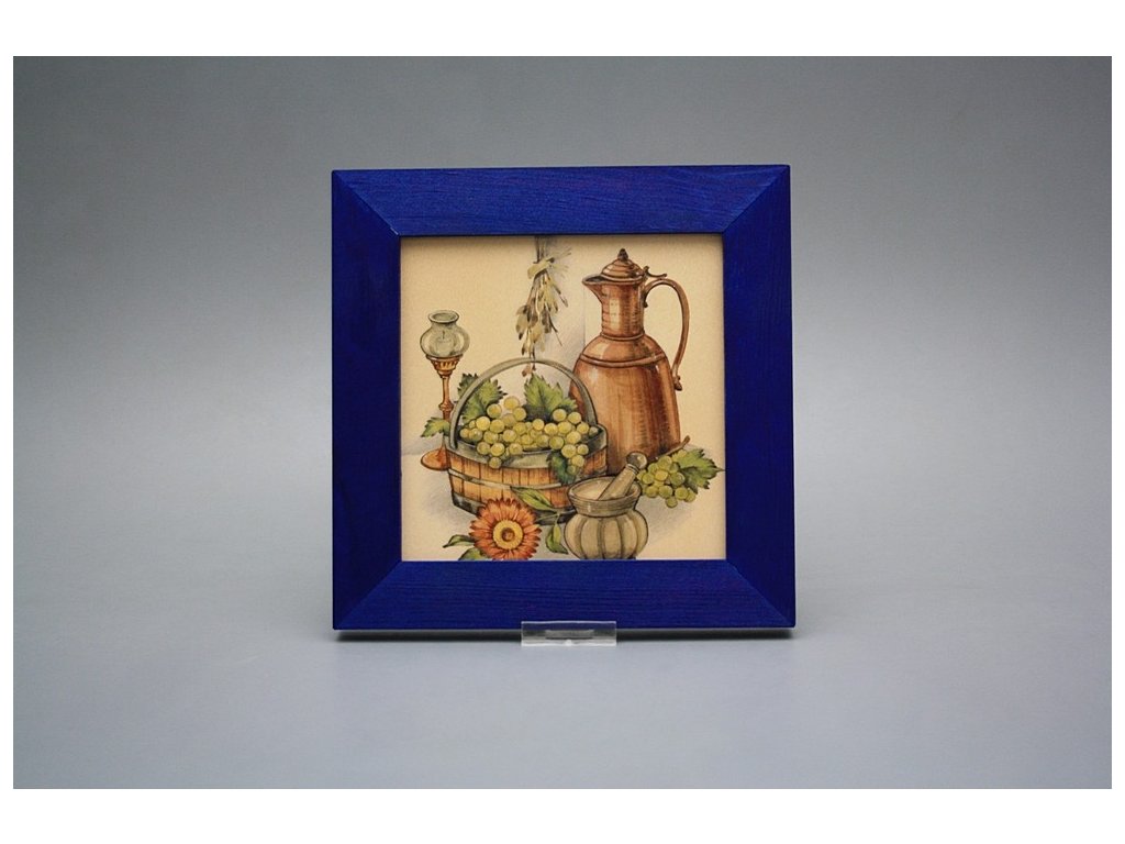 Závěsný keramický obrázek s dřevěným rámečkem, vypalovací teplota motivu 820 st.C., nesmazatelný omyvatelný dekor.