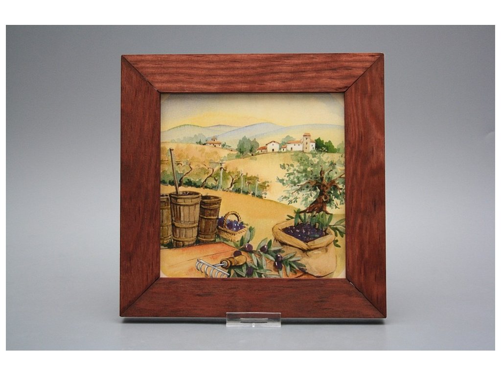 Závěsný keramický obrázek s dřevěným rámečkem, vypalovací teplota motivu 820 st.C., nesmazatelný omyvatelný dekor.