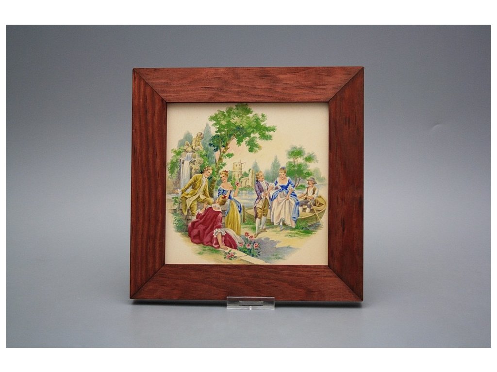 Závěsný keramický obrázek s dřevěným rámečkem, vypalovací teplota motivu 820 st.C., nesmazatelný omyvatelný dekor.