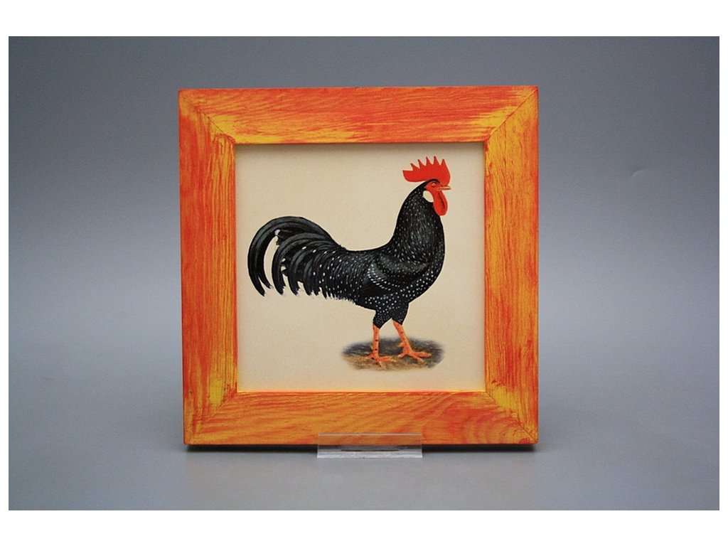 Závěsný keramický obrázek s dřevěným rámečkem, vypalovací teplota motivu 820 st.C., nesmazatelný omyvatelný dekor.