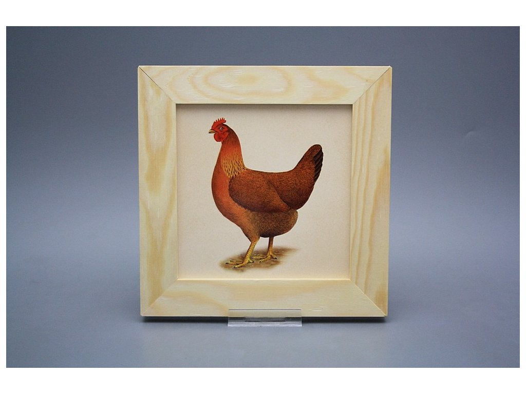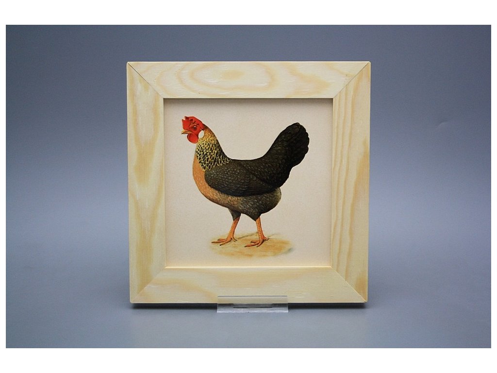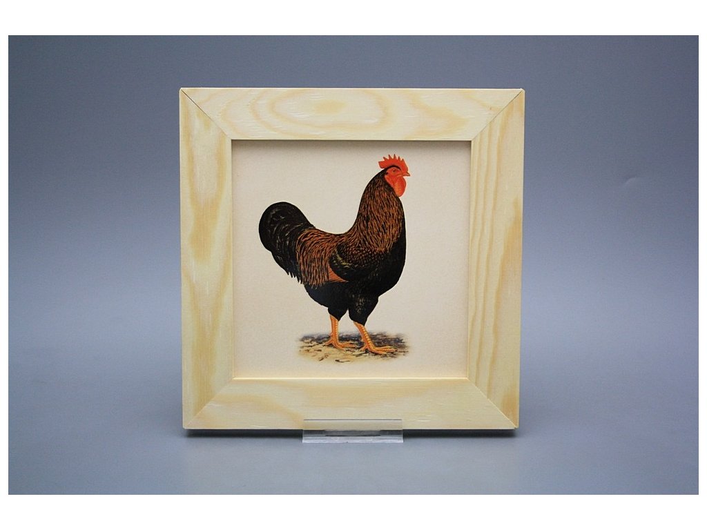Závěsný keramický obrázek s dřevěným rámečkem, vypalovací teplota motivu 820 st.C., nesmazatelný omyvatelný dekor.