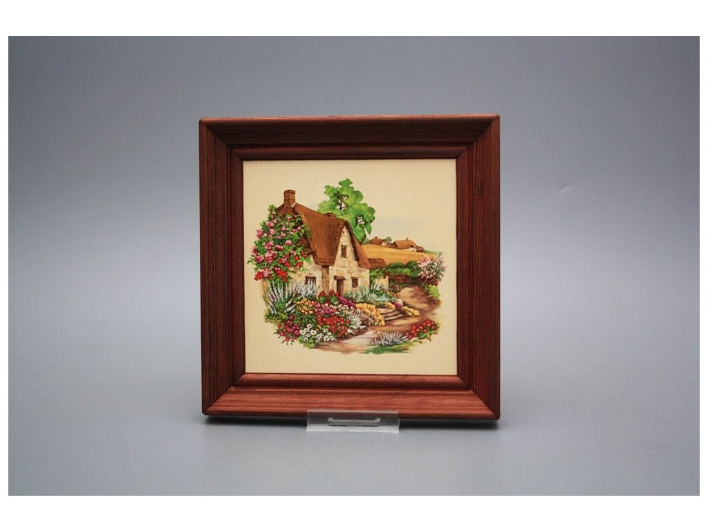 Závěsný keramický obrázek s dřevěným rámečkem, vypalovací teplota motivu 820 st.C., nesmazatelný omyvatelný dekor.