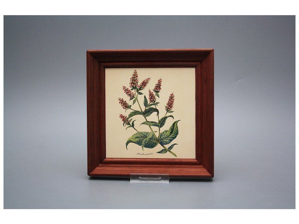 Závěsný keramický obrázek s dřevěným rámečkem, vypalovací teplota motivu 820 st.C., nesmazatelný omyvatelný dekor.