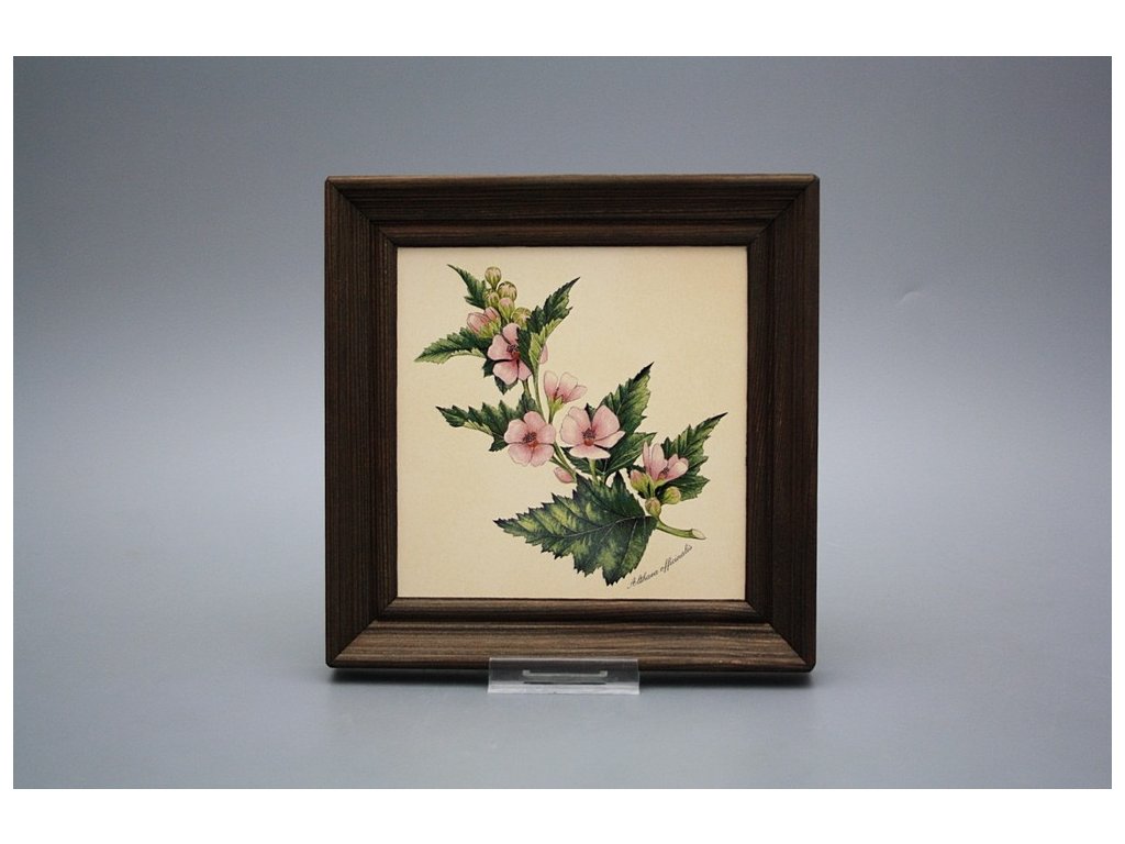 Závěsný keramický obrázek s dřevěným rámečkem, vypalovací teplota motivu 820 st.C., nesmazatelný omyvatelný dekor.
