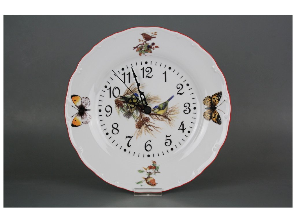 Practical plate clock 25cm of high-quality Czech porcelain. Quartz movement (2-year warranty), batteries included.