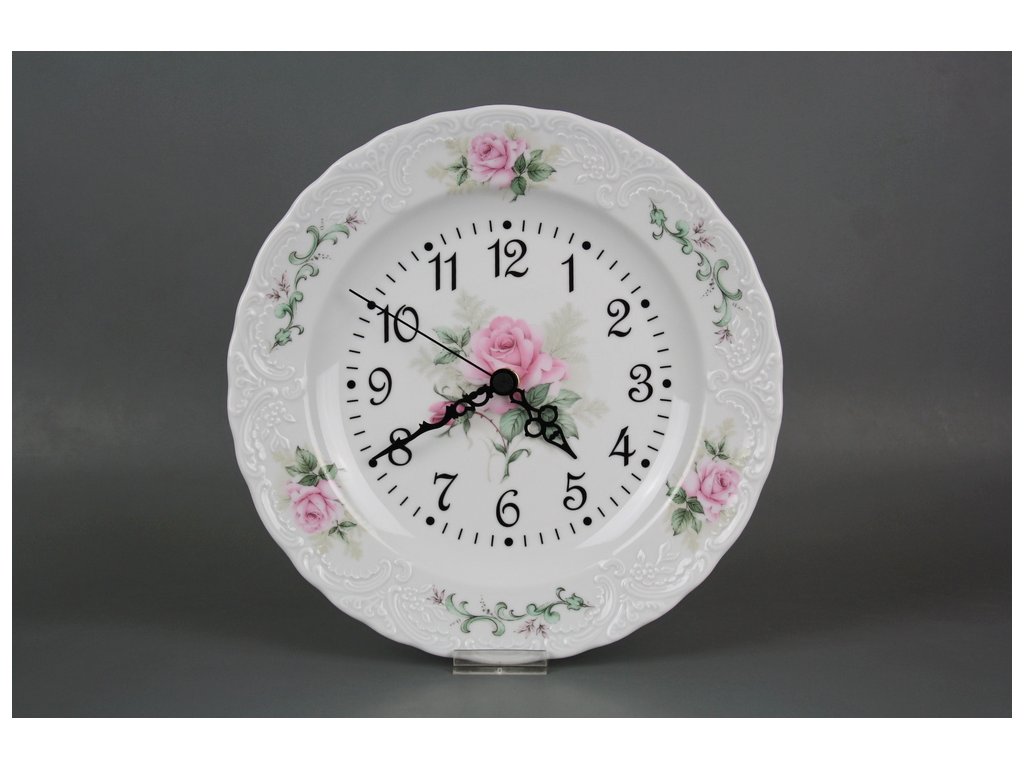 Luxury plate clock 26cm of high-quality Czech porcelain. Quartz movement (2-year warranty), batteries included.